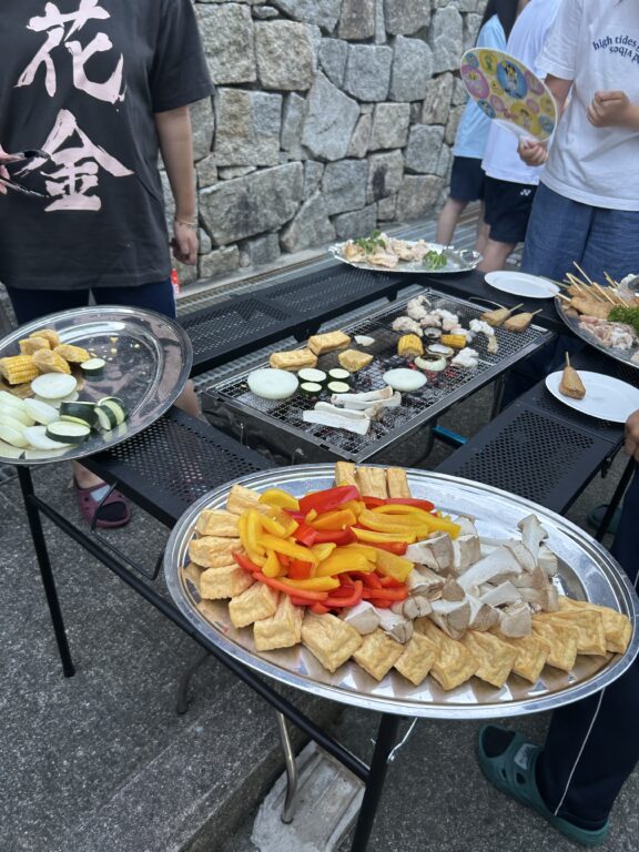3日目の夜は、施設の方が用意してくださったバーベキューを堪能し、スイカ割りも楽しみました。