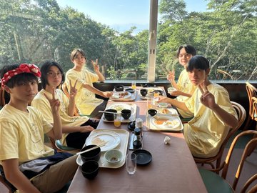 軽音楽部 【合宿2日目①】 2025.07.24 2日目の朝を迎えました。外は快晴。 太陽が当たっていても気温もそこまで高くなく、とても気持ちがいいです。 朝食も美味しくいただきました! 今日はこれから練習三昧です。
