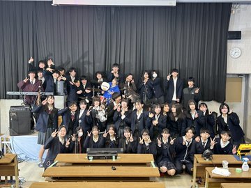今日、富田林市にある金剛高校の部内ライブに1年生2バンドが参加させていただきました。ライブ終了後、交流もさせていただきました。とてもいい経験となりました。