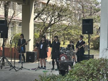 今日、桜塚高校で行われた「さくらのおもてなし」で同窓会の方や地域の方々の前でキャンディーズの「春一番」、和田アキ子の「古い日記」、地元商店街応援ソング「おかまち桜いろ」の3曲を演奏させていただきました。