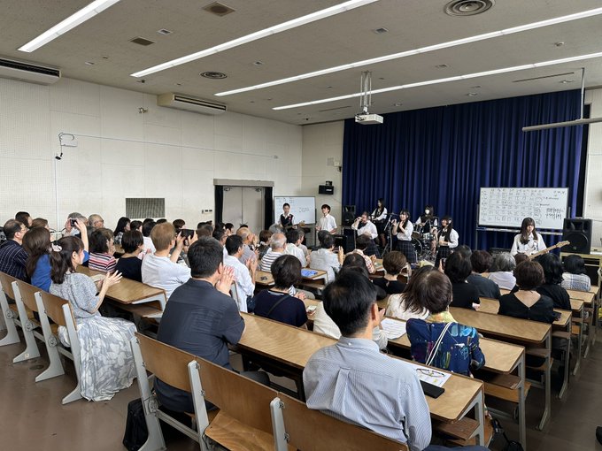 今日、此花区民センターで行われた軽音連イベント「サマーフェスティバル」に参加し、他校の方たちとバンドを組むミックスバンドに4名が参加。クラブ代表バンドも出演、司会も担当しました。同じ此花区夢洲で開催中の万博のモニュメン…