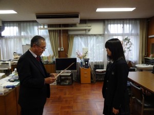 本日放課後、校長室にて「明るい選挙啓発ポスターコンクール」の本校の入賞者6名への表彰式が行われました。今年も昨年に引き続き、豊中市選挙管理委員会の梅村晃様から表彰状及び副賞が授与されました。入賞した生徒の皆さんお…