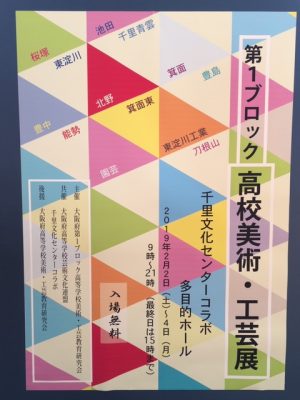2月2日(土)から4日(月)まで千里文化センターコラボ多目的ホールで作品展示しています。1ブロックの学校の作品がまとめて見れます。是非お立ち寄りください。