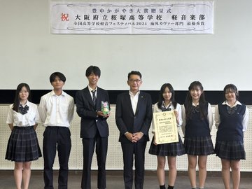 先月行われた全国大会の最優秀賞を受けて、本日、豊中市より「豊中かがやき大賞」を頂きました!豊中市の長内市長さん直々に来校頂き、授与してくださいました。桜塚軽音としては2018年信州総文祭グランプリ以来2度目の豊中かが…