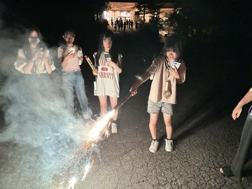 夕食後もまた練習!そして、全員で花火をしました!!明日は午前中、この合宿の成果発表会ライブをして、昼食後、大阪に帰ります。ライブ会場がとても広くてびっくりです。