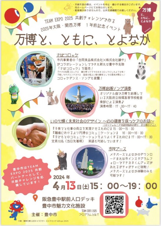 今日、阪急豊中駅前で行われた「万博1年前記念イベント」に参加させて頂き、オリジナルの万博PRソング「Yume色OSAKA」や「ミャクミャクのうた」など7曲演奏させて頂きました。たくさんの方々に聴いて頂きました。万博開催…