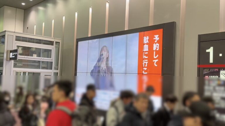 桜塚軽音オリジナルの献血啓発ソング「笑顔のバトン」がJR大阪駅改札内の3階南北連絡橋南側のビジョンで流れています。24日まで流れるそうで、ここでは約6分に1回流れています。なかなか人通りの激しいところですが、通りかかっ…