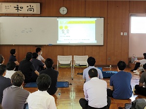 最後に、エピペン(アレルギーなどによるアナフィラキシーショックに対する緊急補助治療に使用される医療器具)に関する映像を視聴しながらデモンストレーションを行い、講習会は終了しました。