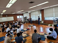 本日の午後、同窓会館(コンビニの2階)において、豊中市消防局の協力のもと教職員による「救急救命講習会」を実施しました。毎年この時期におこなっているものです。