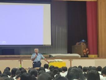 豊中警察交通課の方を講師としてお招きし、「自転車の乗車ルール」について講話をしていただきました。