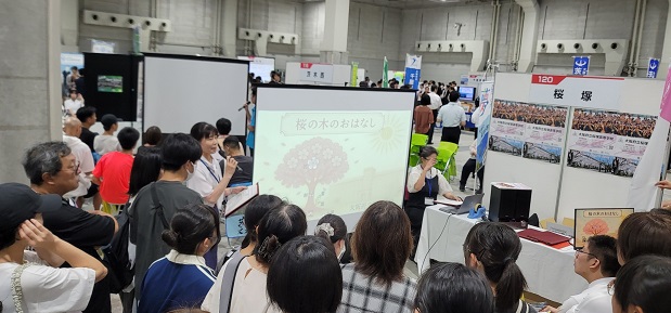 本校は、30分ごと学校説明とプロモーション映像を繰り返す形式で行いましたが、毎回多くの方がブースに集まり、熱心に説明を聞いておられました。