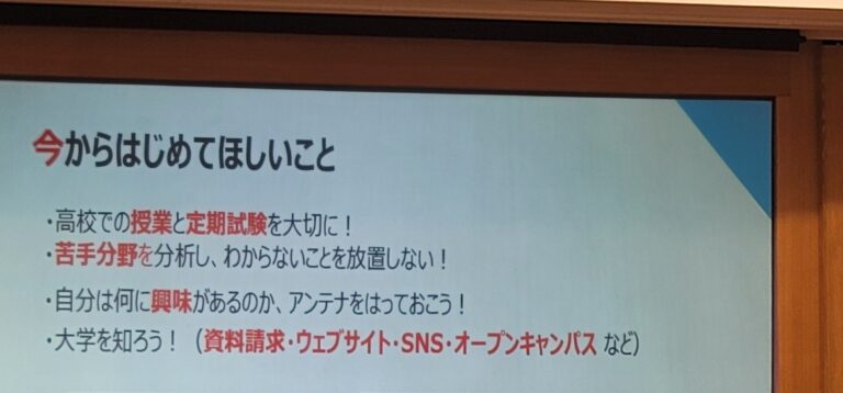 大学の説明だけではなく、「受験生の心得」や「入試の状況」にも触れていただき、とても参考になる内容でした。