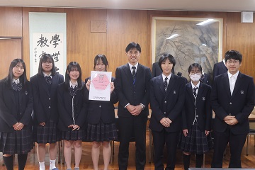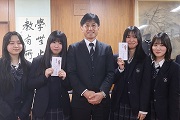 放課後、全国大会に出場するダンス部の部員の皆さんの激励、および、大会で賞を獲得した吹奏楽部とバドミントン部の部員の皆さんへの表彰状の授与を行いました。