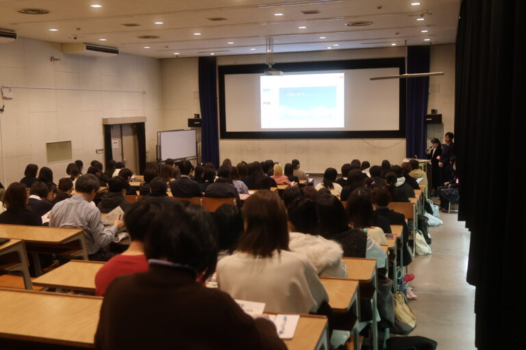 例年の参加状況を参考に定員を140組とさせていただいたところ、ほぼ定員を満たす方々からの申し込みがあり、会場の視聴覚教室は、中学生と保護者の方々でほぼ満席となりました。