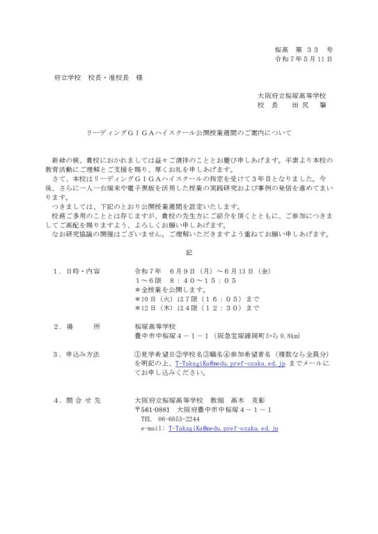 【桜塚】リーディングGIGAハイスクール公開授業週間のご案内