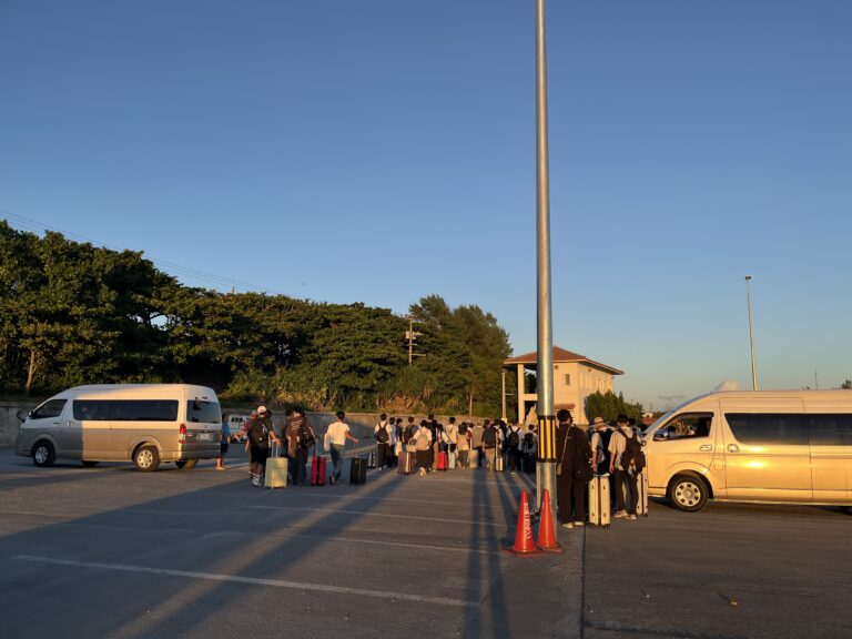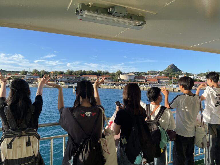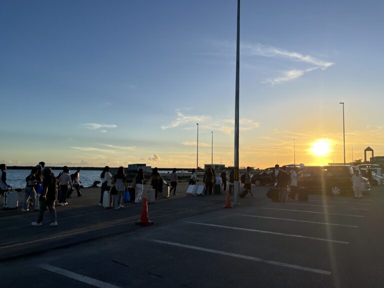 本部港からフェリーで伊江島にわたり、本日18:00、伊江港からそれぞれの御家族に導かれて元気に出発して行きました。